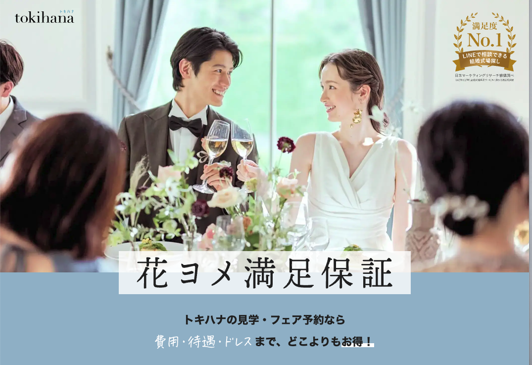 まずは気軽に、トキハナの無料相談で自分たちの予算と理想に合う会場を確かめてみてください。この記事が“安くても満足できる結婚式”を叶えるきっかけになれば嬉しいです。
