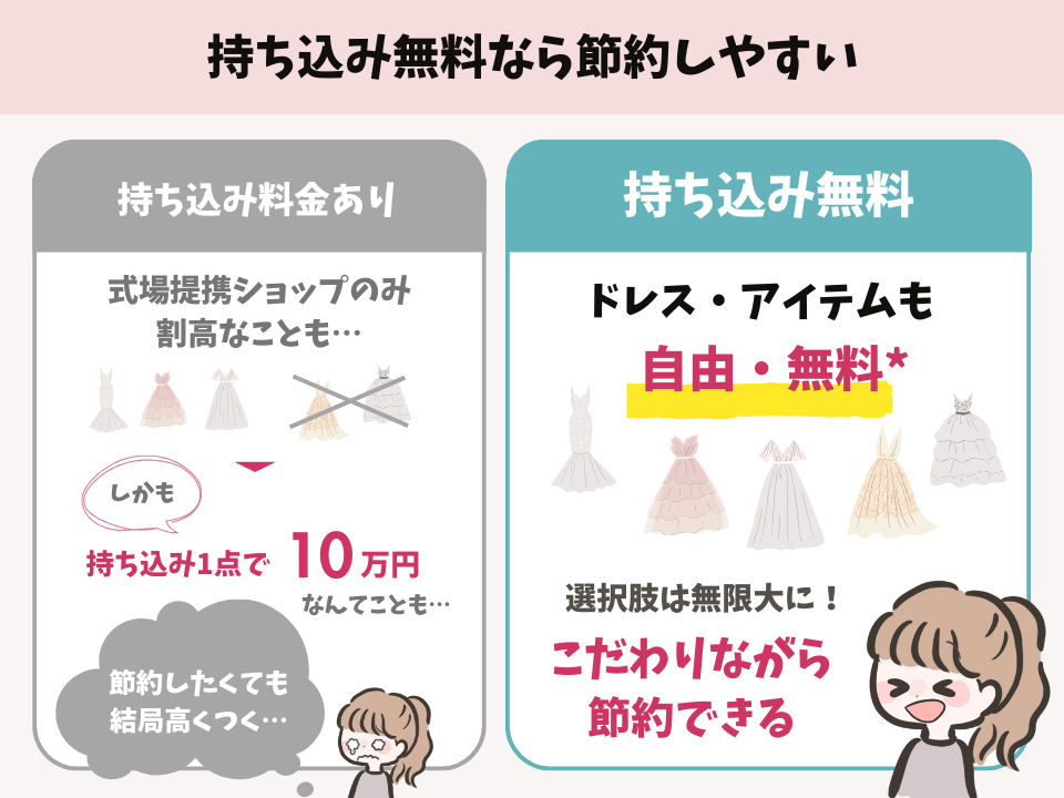 ポイント持ち込み無料の式場が多く、こだわりと節約のどちらも叶えやすい