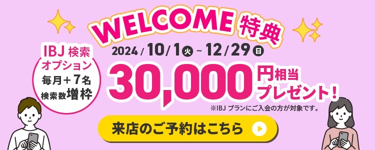 ![]() のりかえ割 | 入会金 118,800円 → 85,800円 | 他社結婚相談所からの乗り換え(※IBJ加盟店は対象外) |